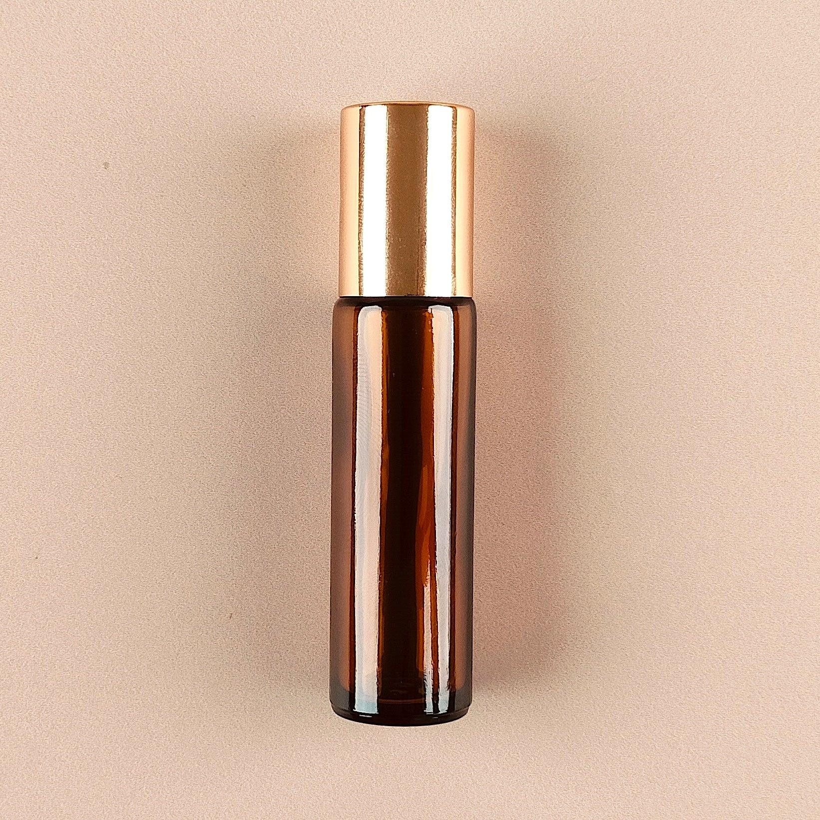 10ml Amber Roll-on Bottles Gold Cap - Refillable Roller Bottles for Essential Oils and Perfumes, Steel Roller Ball