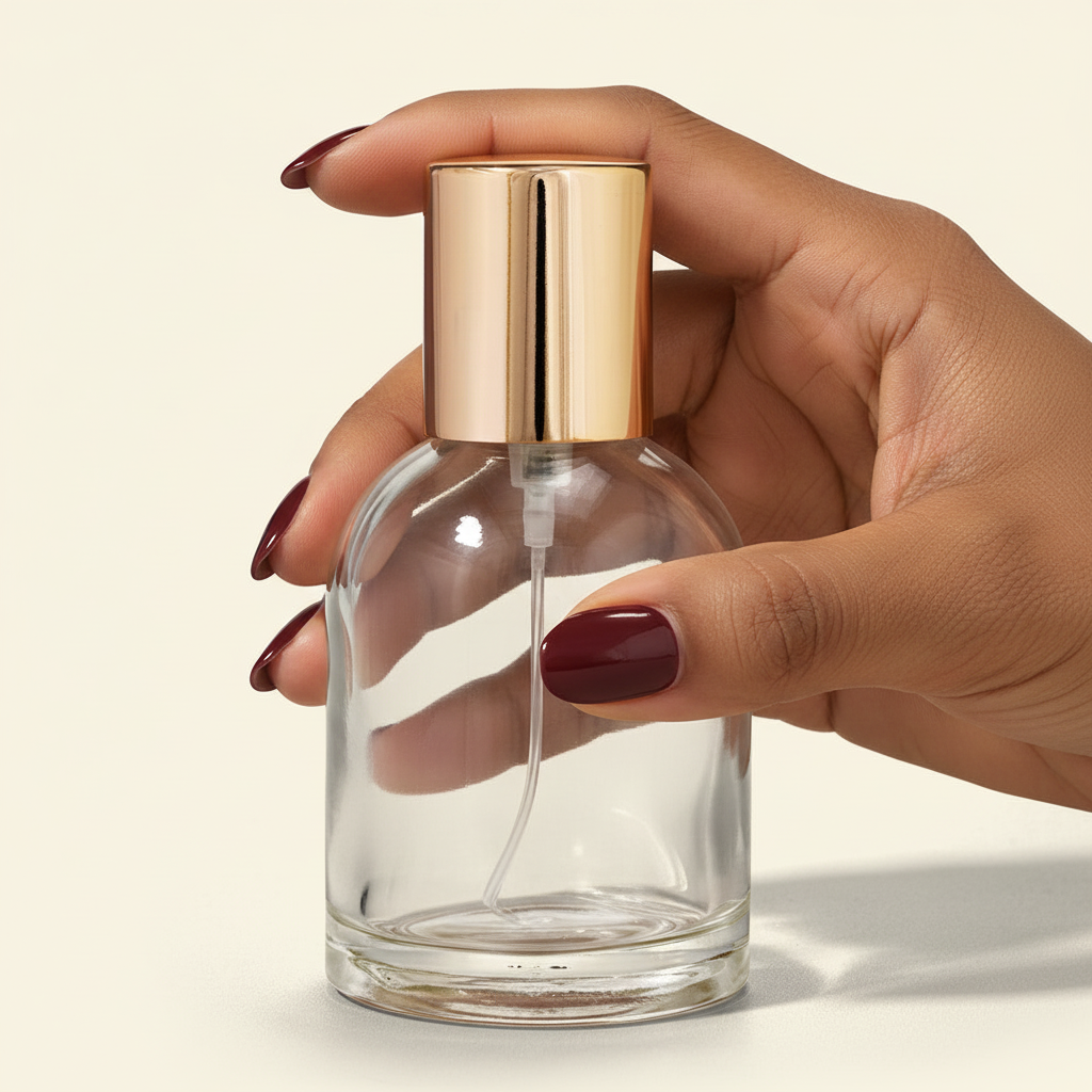 Glass Bottle (50ml / 1oz): Made of high-quality transparent glass. The bottle offers excellent clarity, ideal for showcasing your fragrance.